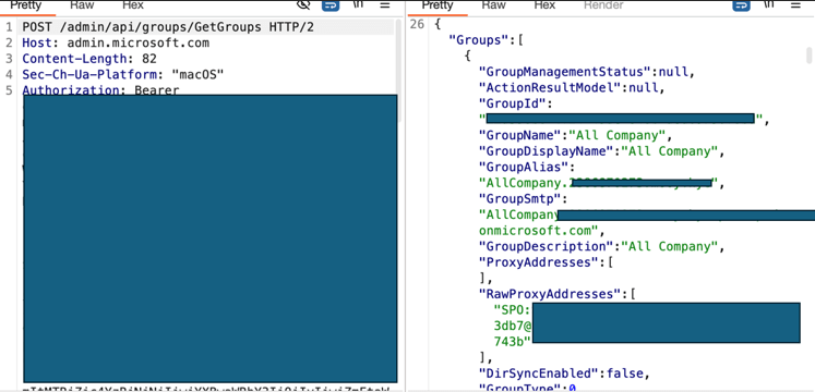 This is essentially the Microsoft 365 Admin Center. Here, I found an API that returns groups, just like the /groups endpoint in GraphAPI!