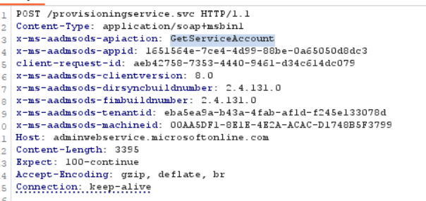 We can see this is the sync API because of the “Host”. And the command itself is called “GetServiceAccount”